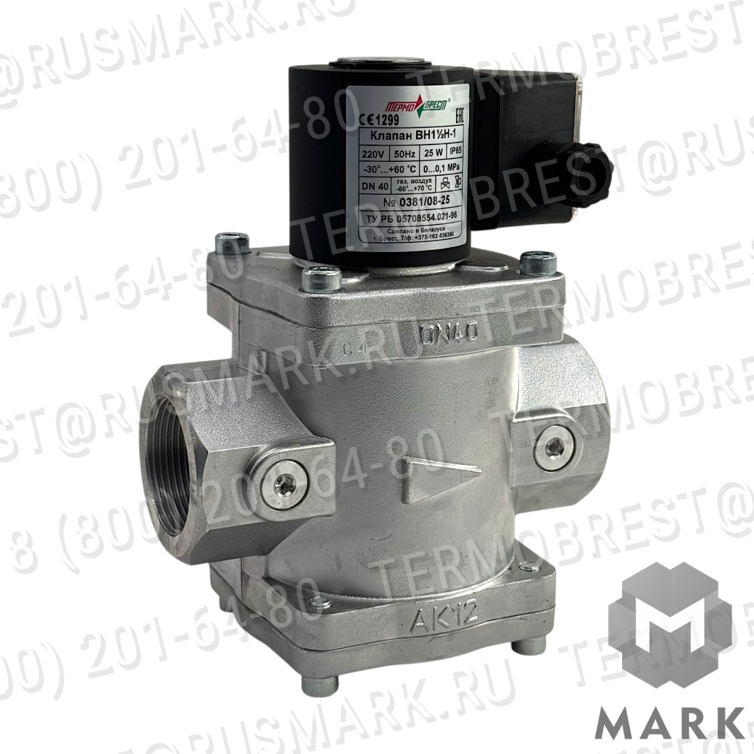 Газовый клапан ВН1 1/2Н‑1 производства «ТермоБрест» — электромагнитный двухпозиционный отсечной клапан для дистанционного управления потоками газовых сред. Предназначен для использования в системах газоснабжения в качестве запорного органа.